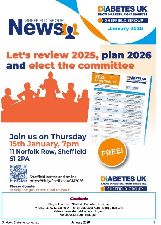 You can read a report on September's meeting which was all about psychological wellbeing and the services offered by Sheffield IAPT. There are also details of a research project on diabetes and hypoglycaemia, as well as features on fat and low carb bread.